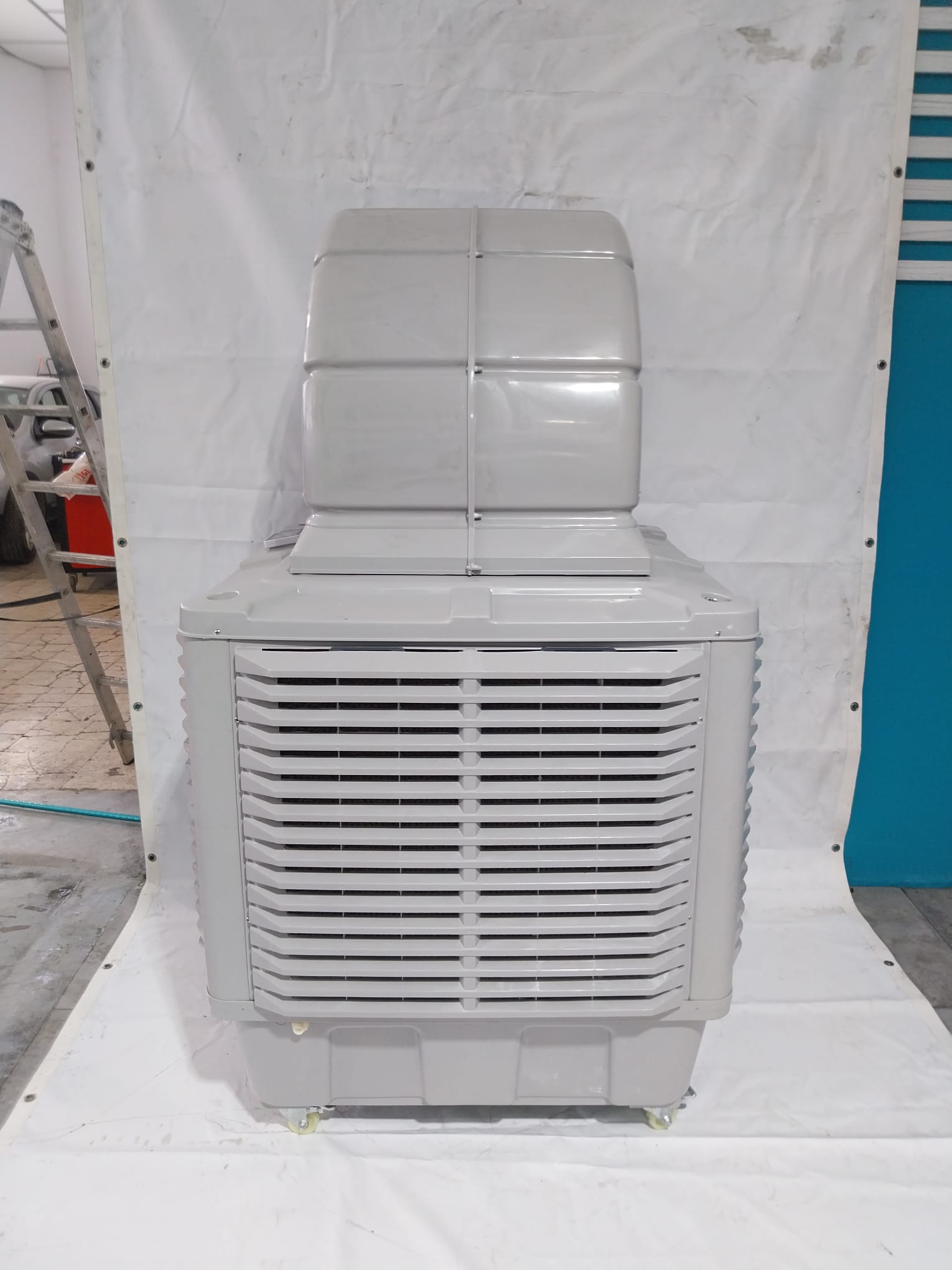 El Evaporative Air Cooler ES 18000Y es la solución perfecta para climatizar grandes espacios de forma eficiente y ecológica. Gracias a su potente caudal de aire de 18.000 m³/h, es ideal para naves industriales, talleres, terrazas, eventos y cualquier entorno que requiera una ventilación intensa sin recurrir al aire acondicionado tradicional.